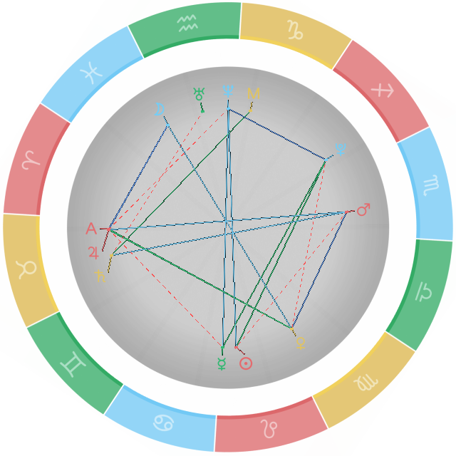 冲相位:又称为对分相,这是个凶相位,两颗行星与星盘圆心夹角为180度。