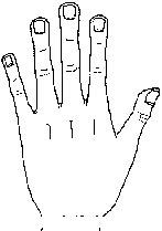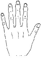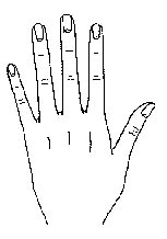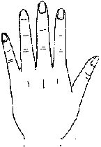 原始手又称劣等手、下等手。其特徵为手指比较一般的手肥短厚硬,指头粗纯笨拙,手形短而弯曲,皮肤颜色较深,掌背青筋浮露,指节粗硬如树根,指甲短而皮肤粗糙,指难反屈,指背纹深而杂乱,掌纹极简单;原始手这种手形现以甚小见,或偶然见一缺乏理智,暴戾易怒,但又胆怯狡猾,不知感情为何物,劳动力强。这类手型者多属肝火亢盛,而患眩晕和呼吸系统疾病机会较高。