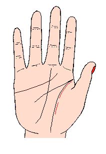 若果就生命线比喻人的一生,则上部属初年,中部属中年,下部属晚年,因此,如果上部生命线内侧,有良好的影响线,则可推断年轻时过着如意的爱情生活;有的人手上完全没有影响线,这类人他的手上皮肤一定很厚,同时也和异性不大来往的不解风情的人;大凡家世良好的人,手上皮肤又薄又软,都容易出现影响线,不过在这些人当中偶尔也有看不出影响线,相反地生长在贫家的,也有人手上却有这个影响线,这样的人,便能够享受更多的性爱,并且也得到社会人仕的爱。