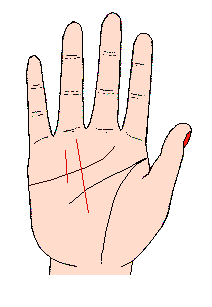 (记号B)如果太阳线在感情线上停下来不再伸长,则表示由于感情问题而陷于困难。