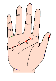 感情线的末端,有一小横切线(记号A),表示与爱人离别后,感情不能像原先那样好;