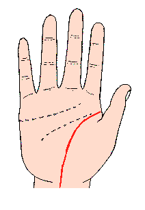 生命线短,在中途忽然变细小而消失的,即表示生命力弱,但若以线之长度来决定是否短命是危险的;如左右手的生命线均短,且几乎在同一位置终止的相,即表示在终点的年龄,有生命危险(或仅活到那个年龄),但如果只有一手的生命线较短,则无此顾虑;即使生命线再短,但大拇指不错或智能线优秀或辅助线的火星线有劲的话,那就可补救生命线的缺点,短的生命线也有微微伸长的可能性;总之:生命线长的人,如喜欢纵欲或暴饮暴食,亦无法长寿,相反的,即使生命线短的人,如果能多多保重身体,亦能多活几岁。