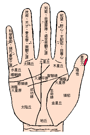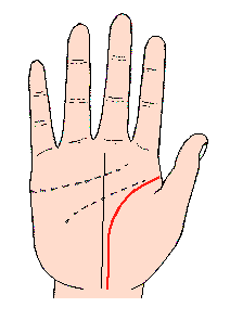 生命线形成大曲线,越过手掌中央的直线,即金星丘之面积显著的变大;金星丘表示精力及活动力和性能力,所以拇指球愈膨大,精力愈旺盛,不会感到疲劳,很容易的能够摆脱生活上的辛苦;但此精力如错用于性欲,则将会引起色情纠纷;主妇如有此种手相,除非丈夫精力很充沛,否则难免红杏出墙;年轻的女性有此相,即不易控制性欲,可能引起异性间爱欲问题。