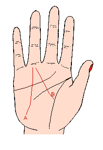 (记号A)由第二火星伸出,进入无名指根部的弓形太阳线,是靠实务或企业开拓好运的人,这种人,生来勤劳自持、能吃苦,而且稳扎稳打,建立基础,以增殖财产,如在军政界,是军事上的奇才,能有显赫的军功。女性具有此相,虽不免辛劳,却能显出胜过男人的干劲,引人注目,不过在艺能界却未能多大发展。