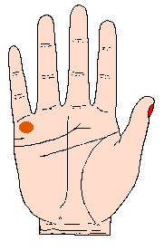土星丘的位置是在中指基部之下,相当于中国手相学的离位;一般土星丘越高耸中指越长;但通常土星这丘发达的人,是比较少。