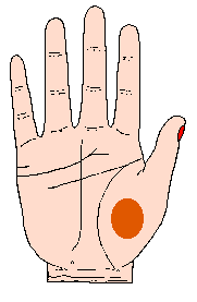金星丘所在的位置,是在第一火星丘的下面,手颈线对上的部份,即拇指底下,生命线内边的部份,相当于中国手相的艮位。金星丘较为发达的人,主仁慈、富同情心、情爱温和、感情丰富等;通常这个丘称为(爱)丘,父母之爱其子女,子女之爱其双亲,夫妇间之恩爱,朋友间之友爱等;这个(爱)都是从我们内心表达出来的,当然爱的种种是有区别的。