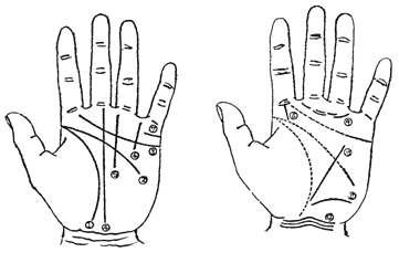 十一、放纵线——代表心身衰弱的线纹,有此线纹的人乃是生活不规律的人;