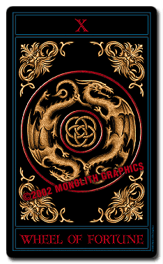 “命运之轮”,象征时运的逆转,除了变动本身,世上并没有真正恒常不变的真理。这张牌显示了喜欢赌博的倾向,它会使生命因此起伏不定。事实上,人生不管成功或失败都与命运之轮紧紧相系;所以,生命中的成败输赢都不会是永久固定的。