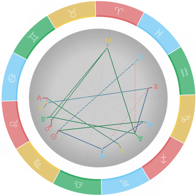 冲相位:又称为对分相,这是个凶相位,两颗行星与星盘圆心夹角为180度。