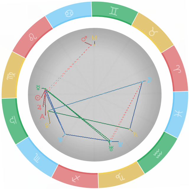 拱相ä½ï¼šåˆç§°ä¸‰åˆ†ç›¸ï¼Œè¿™æ˜¯ä¸ªä¼˜è‰¯çš„相ä½ï¼Œä¸¤é¢—行星与星盘圆心夹角为120度。
