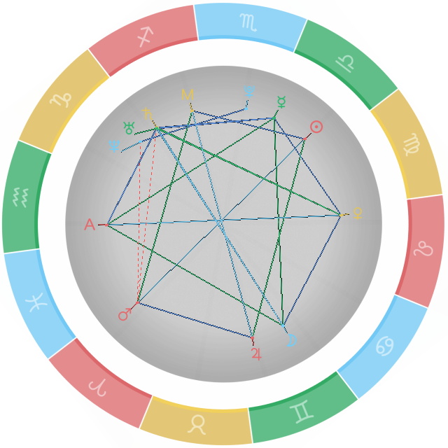 冲相位:又称为对分相,这是个凶相位,两颗行星与星盘圆心夹角为180度。