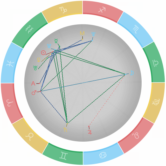 冲相位:又称为对分相,这是个凶相位,两颗行星与星盘圆心夹角为180度。
